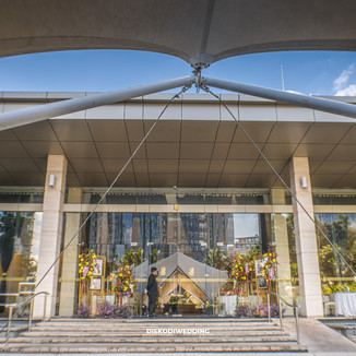 Suasana senja yang syahdu dan Nuansa musik pilihan yang merdu seperti menyatu mengiringi langkah Alwinta & Adithya sore itu menuju meja akad nikah untuk menyatukan hati dan segala yang mereka cita-citakan.